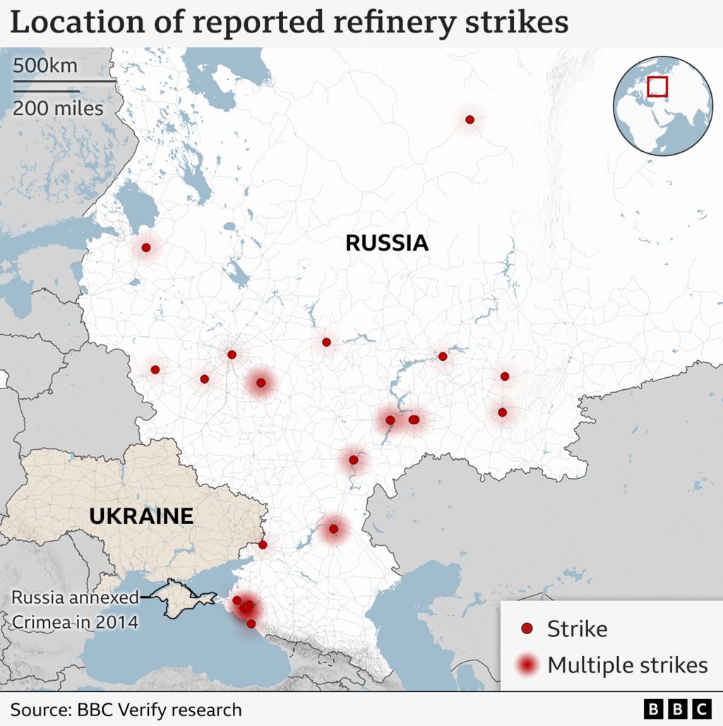 В останні місяці Україна значно збільшила кількість атак на російські нафтопереробні заводи, що призвело до дефіциту пального та зростання цін у деяких регіонах країни. Це підтверджується аналізом матеріалів ВВС Verify та ВВС Росія.